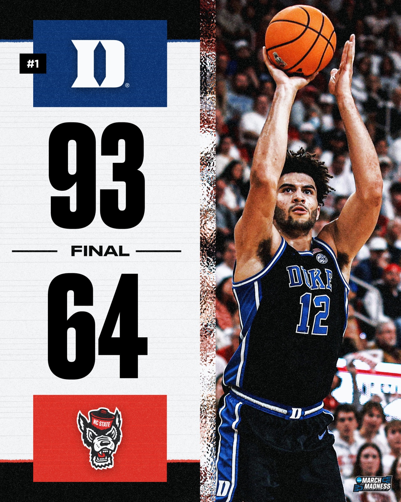 03月03日讯 NCAA常规赛,杜克大学在客场以93-64大胜北卡罗莱纳州立大学,豪取7连胜。